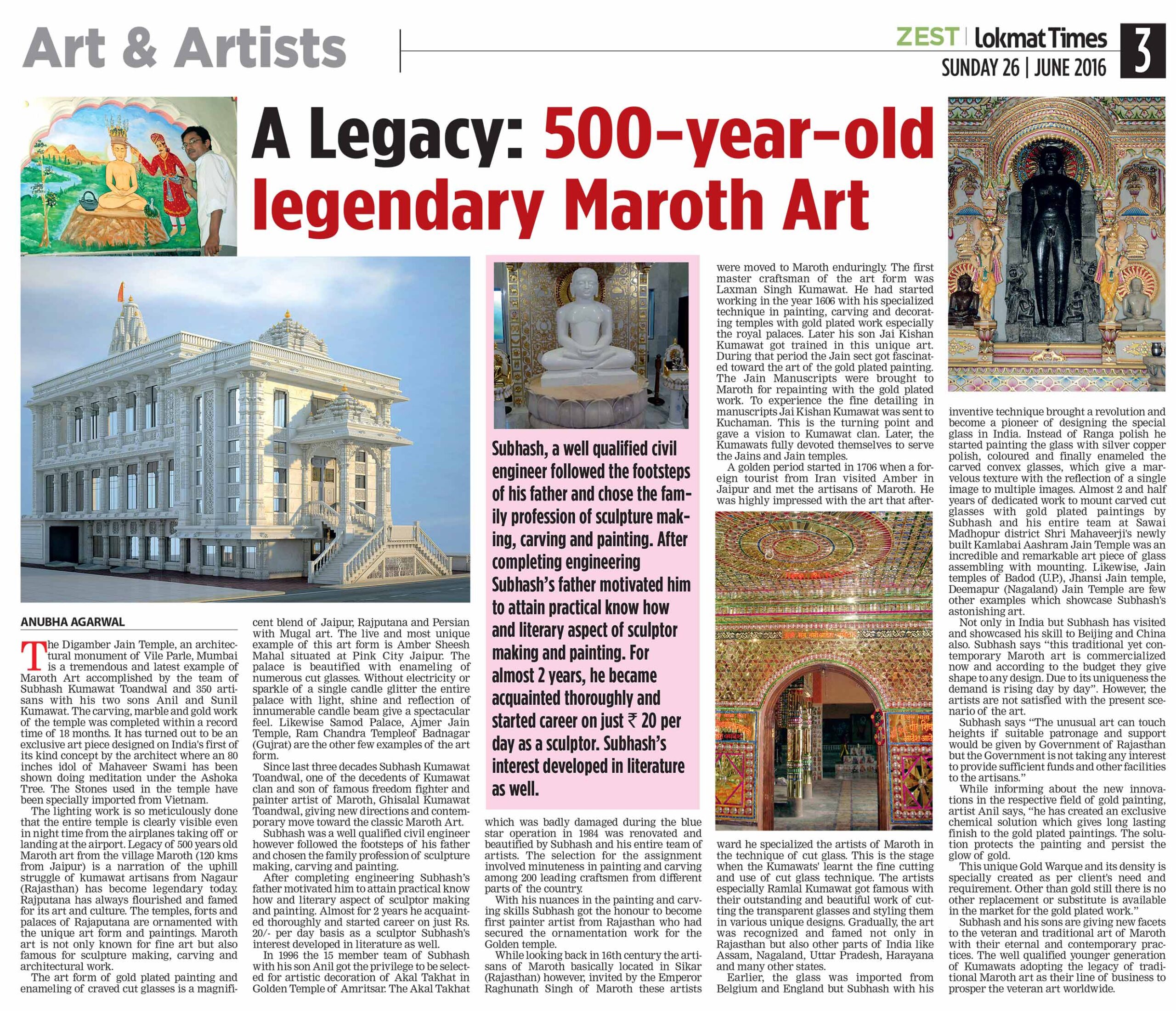 Published in LOKMAT TIMES ZEST Sunday Special issue 26 June 2016