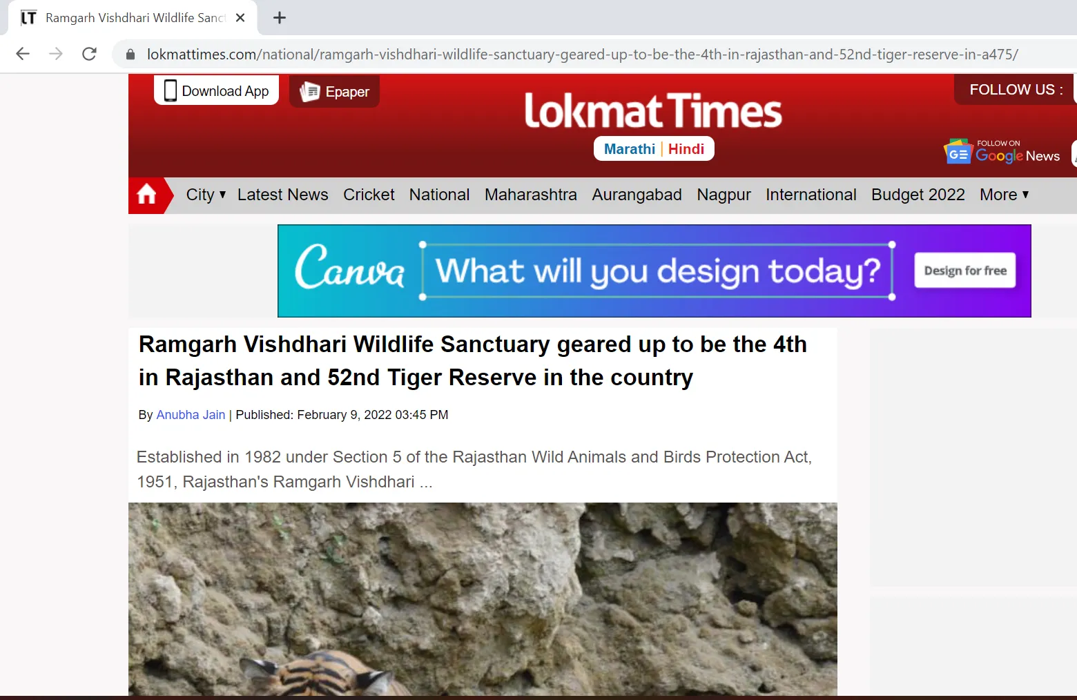 My exclusive story published in National Newspaper Lokmat Times https://www.lokmattimes.com/national/ramgarh-vishdhari-wildlife-sanctuary-geared-up-to-be-the-4th-in-rajasthan-and-52nd-tiger-reserve-in-a475/ Bangalore Karnataka’s Metro Times newspaper https://metrotimesindia.com/6236/ First India…