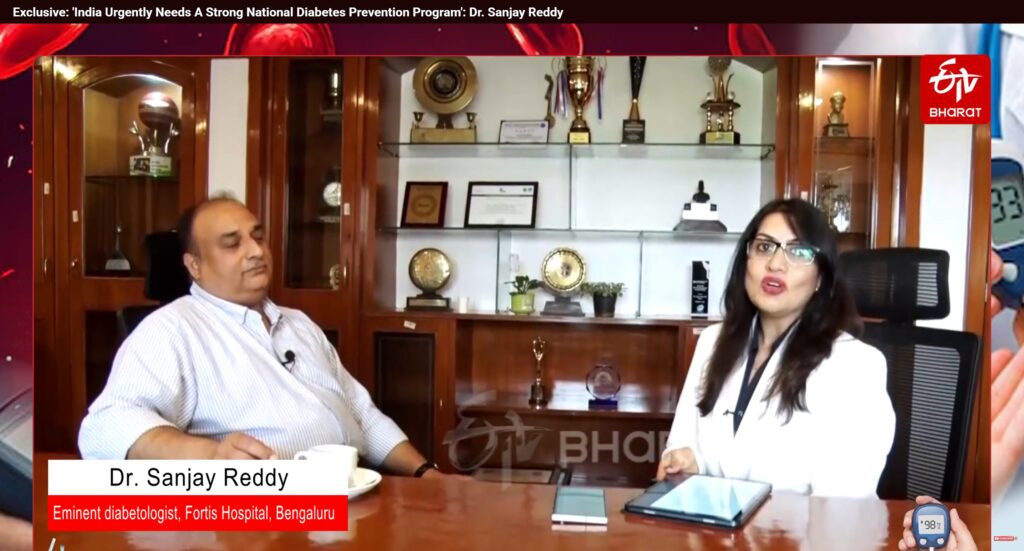 ETV BHARAT Senior Journalist Anubha Jain’s exclusive one on one interview with Dr. Sanjay Reddy, eminent endocrinologist and one of India’s top diabetologists, presently with Fortis Hospital, Cunningham Road in Bengaluru.