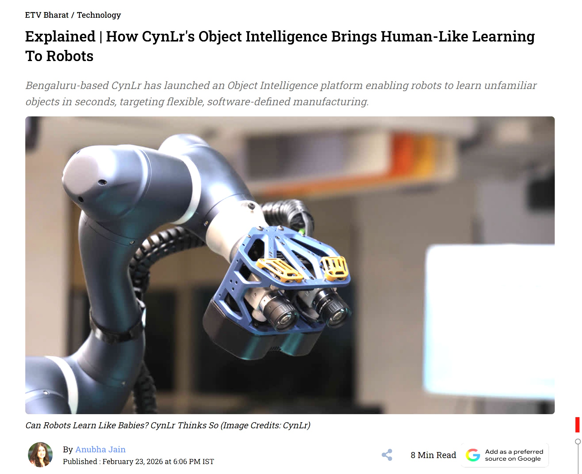 Read my detailed Interview report: https://www.etvbharat.com/en/technology/explained-how-cynlrs-object-intelligence-brings-human-like-learning-to-robots-enn26022305244