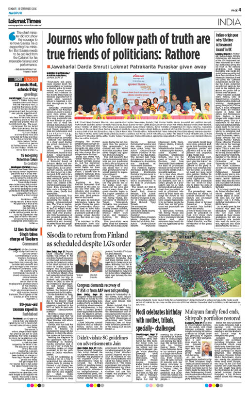Published in Lokmat Times Page 4 date 18.9.16