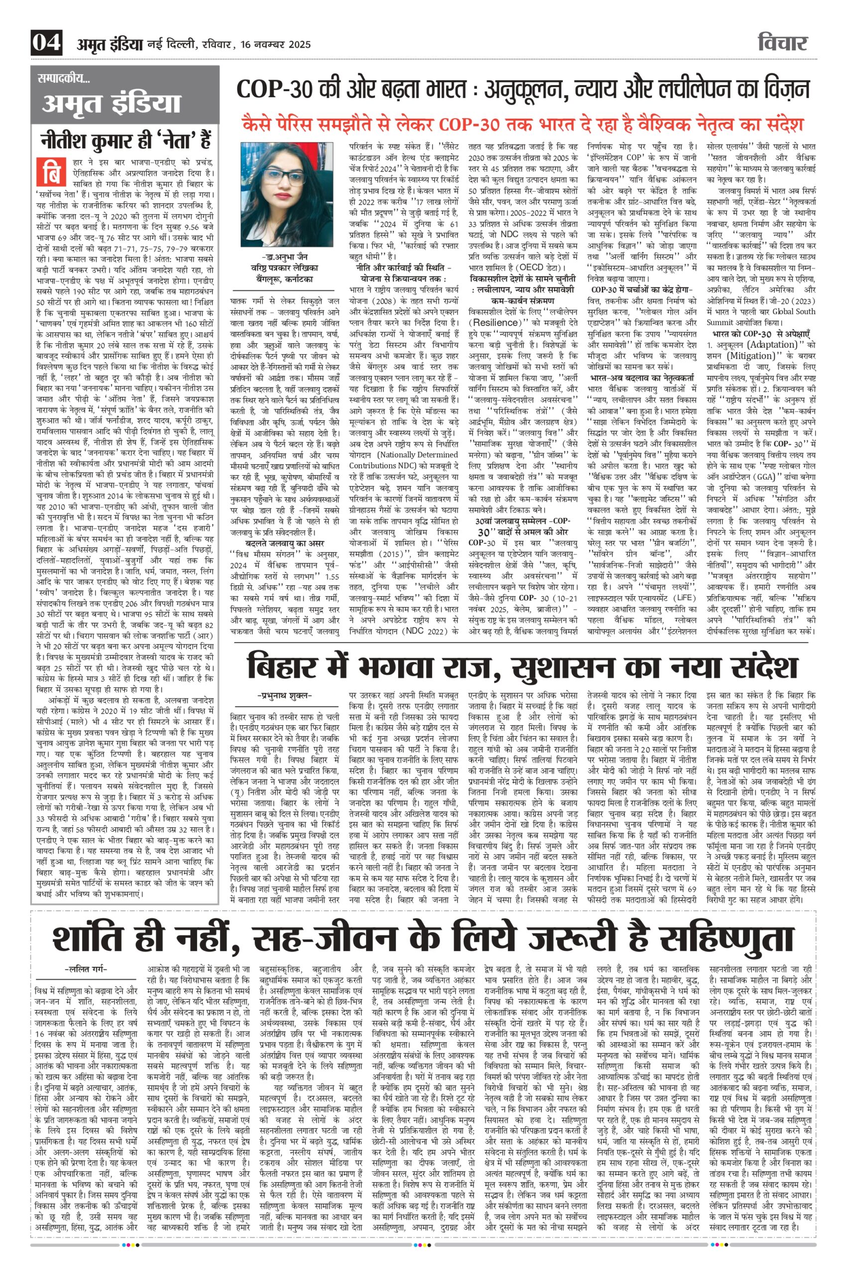 Dr. Anubha Jain is a Senior Journalist Author associated with Eenadu TV, Lokmat Media & All India Radio — handling diverse domains – politics, economics, wildlife, space, science & technology and specializes in tracking social and economic changes taking place in the country. Based in Bengaluru she's recognised for her work in journalism, advocacy for women's empowerment and one-on-one interviews with prominent personalities.