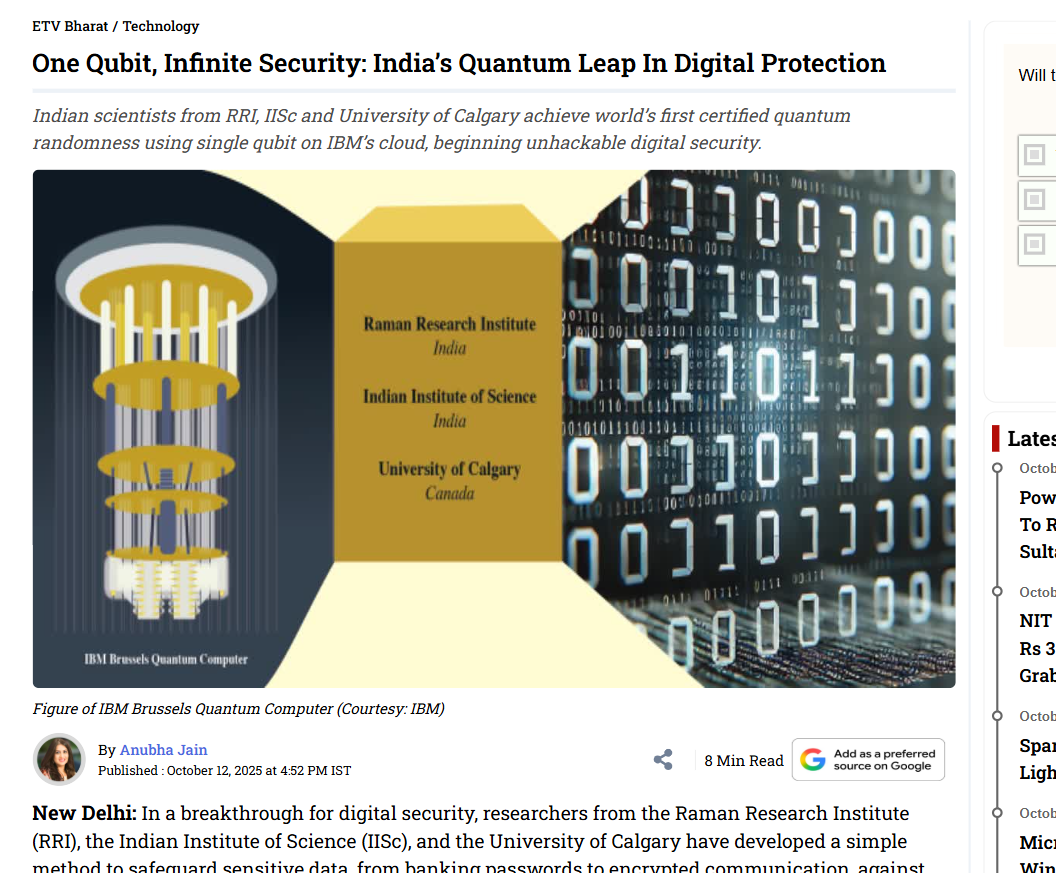 In a breakthrough for digital security, researchers from the Raman Research Institute (RRI), the Indian Institute of Science (IISc), and the University of Calgary have developed a simple method to safeguard sensitive data, from banking passwords to encrypted communication, against future cyberattacks.
