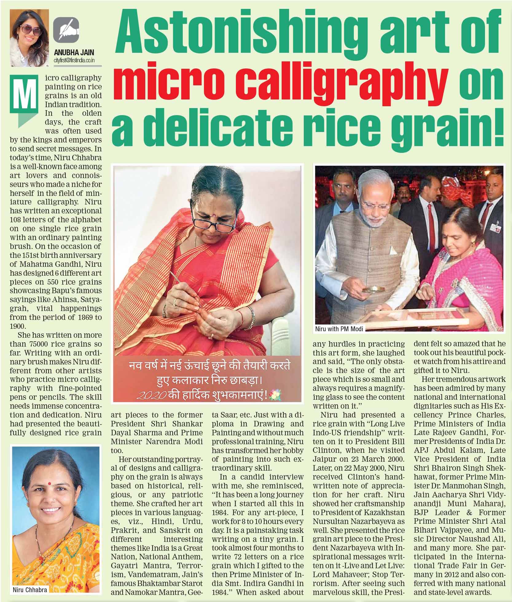 Dr. Anubha Jain is a Senior Journalist Author associated with Eenadu TV, Lokmat Media & All India Radio — handling diverse domains – politics, economics, wildlife, space, science & technology and specializes in tracking social and economic changes taking place in the country. Based in Bengaluru she's recognised for her work in journalism, advocacy for women's empowerment and one-on-one interviews with prominent personalities.