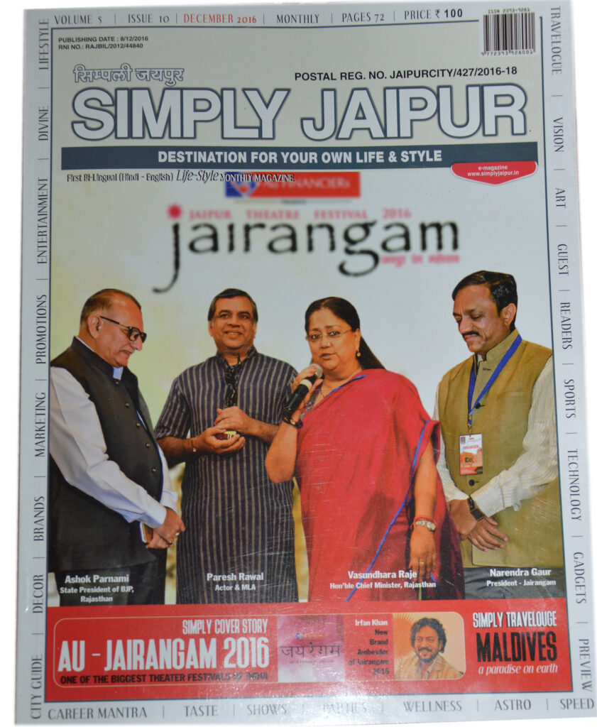 My photo article cum interview with Jaipur’s renowned personality, senior advocate Shri NM Ranka has been published in City’s famous magazine – SIMPLY JAIPUR DECEMBER 2016 Issue.
