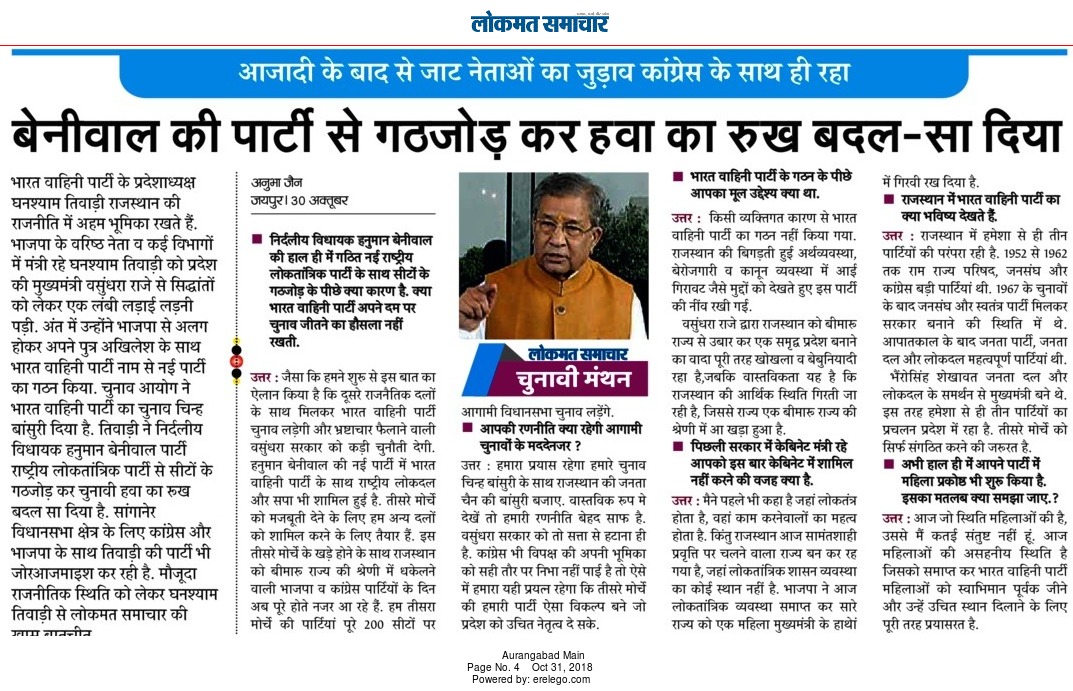 Interview with senior politician Ghanshyam Tiwari.